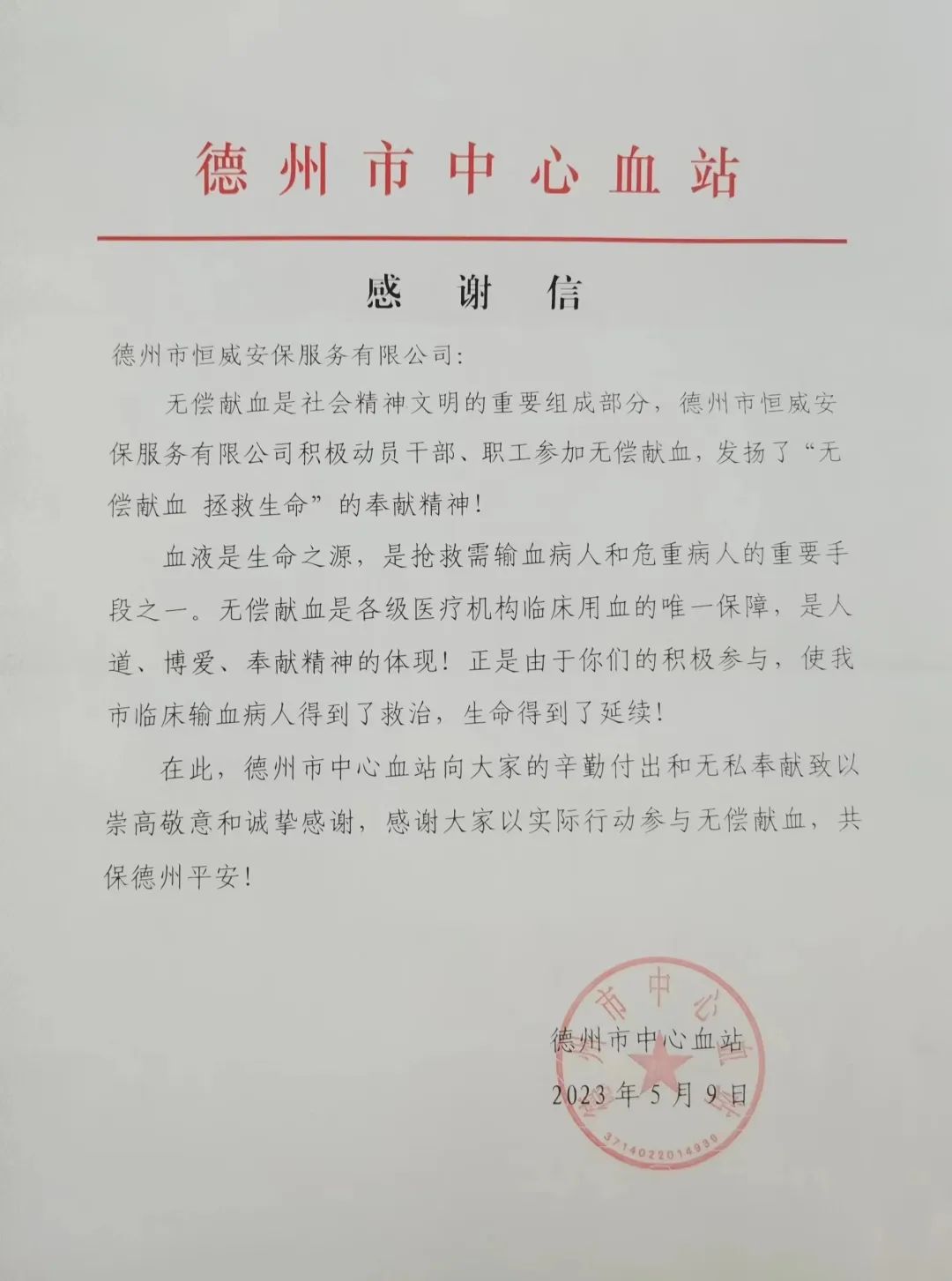 无偿献血已成为我公司的一个优良传统,也是广大恒威安保人热衷公益、服务群众的一个见证。此次献血活动,大家用殷殷热血,履行一个公民的光荣义务,表达着回馈社会、关爱生命的真挚情感,彰显了恒威安保大爱无疆、心系群众、关爱群众、乐于奉献的良好形象。