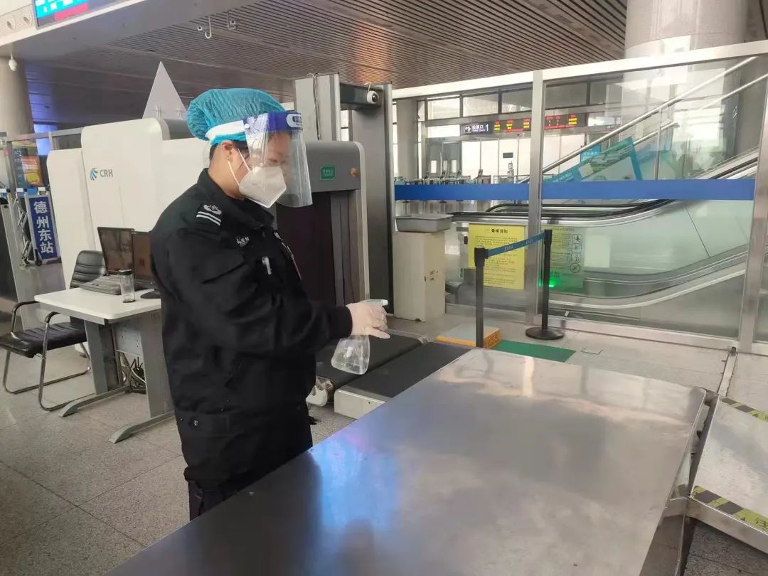 东西安检两站是人员聚集的地方,而人员聚集的地方病毒传染的可能性会更高,可能造成的传染数量也更大。作为安检工作者,在特殊时期,不仅要始终如一地让客户人身财产安全,同时也要做好防疫措施,让疫情安全。为此东西安检两站按照公司领导及上级相关要求,迅速落实工作现场防疫举措,每日上班前每位员工需进行测温与消毒,让自身无传染隐患,且上岗时需正确佩戴口罩等防护用具。在每日上岗前由员工负责将安检现场通道内使用的器材与设备进行消毒,不放过任何一个角落,让工作现场的环境安全。再困难的处境打不倒安检人们守护安全的决心及做好防疫工作的耐心。
