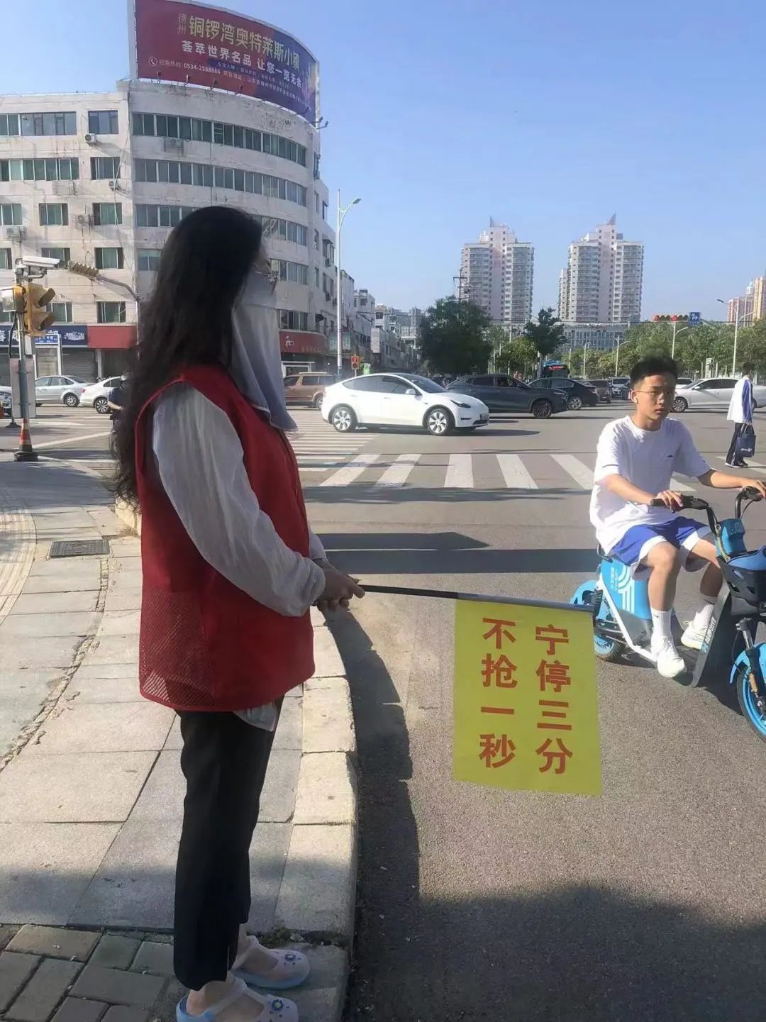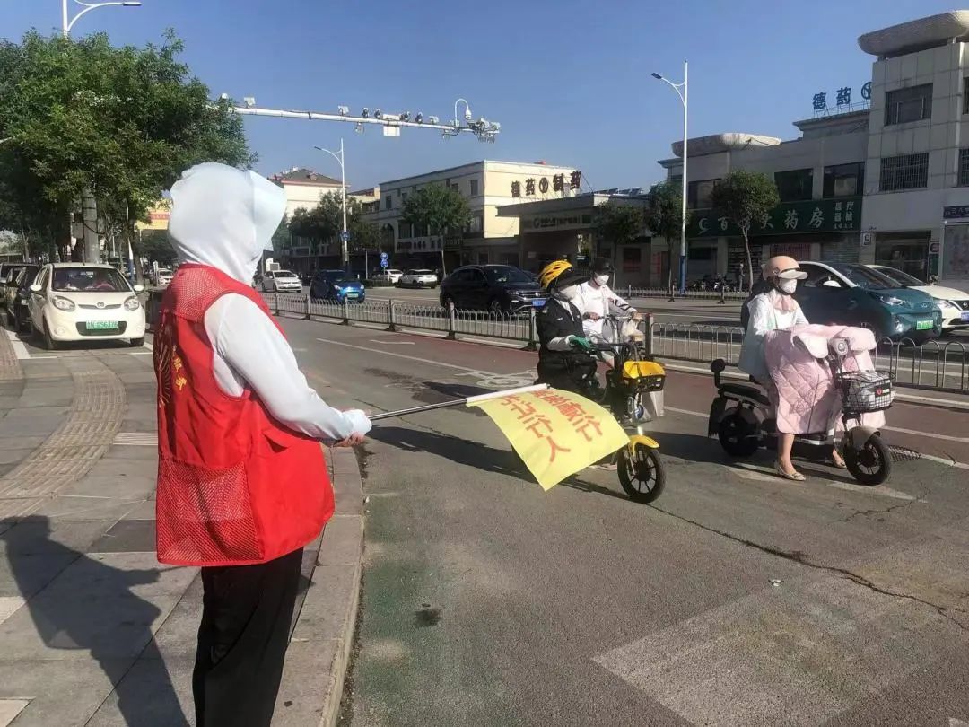 7月7日,连日降雨后的德州市开启闷热的“蒸煮”模式。身着“红色马甲”的志愿者们提前到达九中路口,烈日炎炎下,他们积较协助交警指挥疏导行人、非机动车;劝阻行人、非机动车闯红灯等交通违法行为;宣传引导行人文明行路;宣传引导非机动车安全文明骑行;宣传引导机动车行经过人行横道时减速避让行人;扶助老、幼、残疾人安全文明行路,并热情为外地驾驶人、游客提供咨询服务等。
