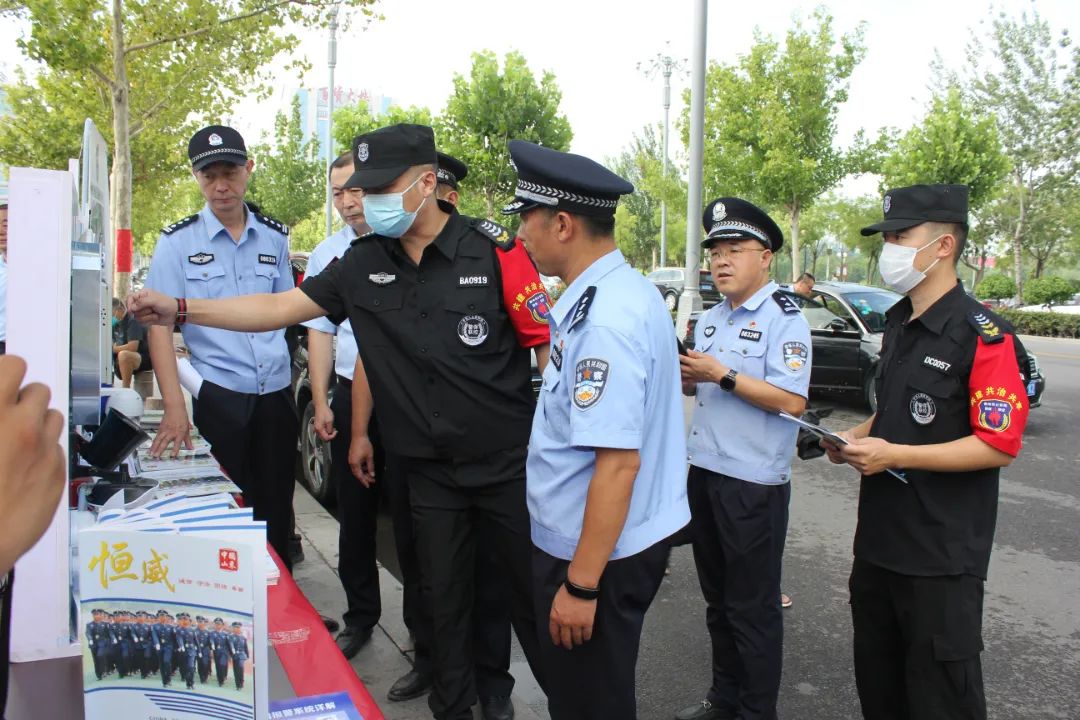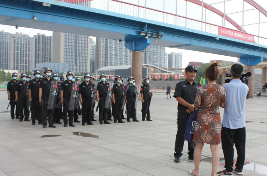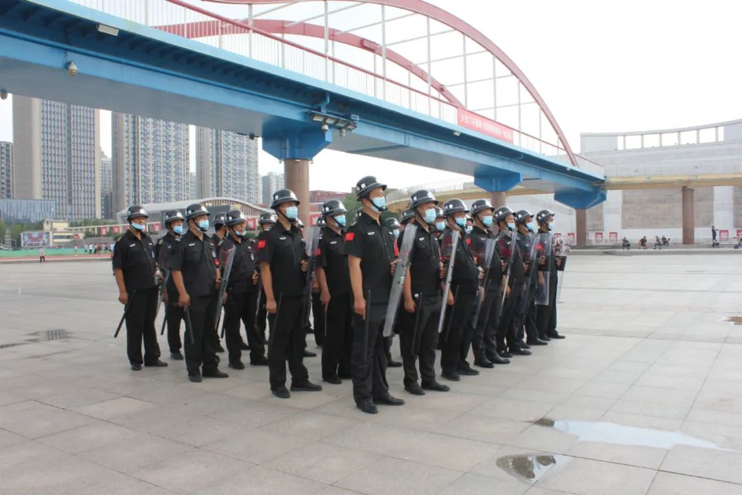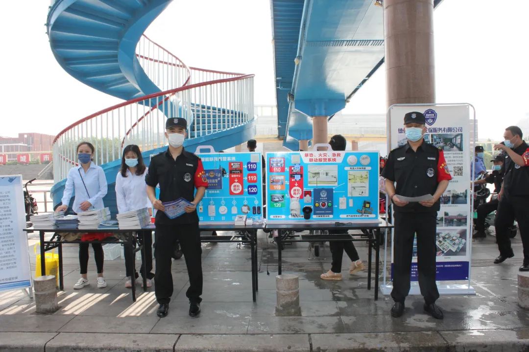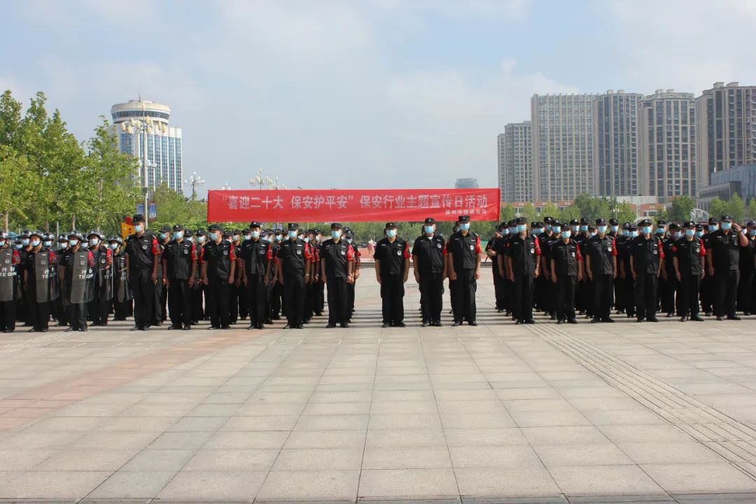 通过队列展示、展板宣传、横幅悬挂、发放宣传单、现场讲解等方式,向广大人民群众介绍新时代的保安队伍。保安队伍作为协助公安机关维护社会治安的重要力量,始终坚持党的领导,以对党和人民高度负责的精神,敢打必胜的决心,决战决胜的信心,主动承担社会责任,积较投身治安防范、为群众服务等各项安保维稳工作中,充分展示州城保安队伍纪律过硬、作风过硬、素质过硬的良好精神风貌。
