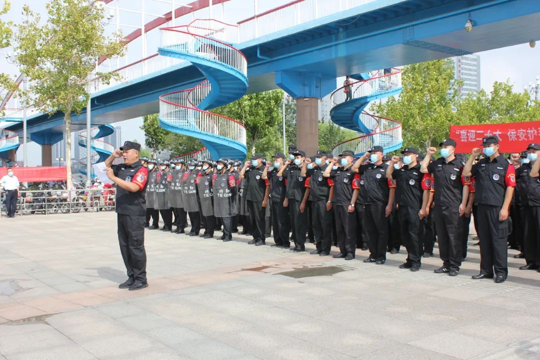 全体保安员在广场举行宣誓仪式。大家紧握拳头,立下铮铮誓言:作为一名州城保安员,主动担当、协助维护社会治安秩序、保护客户安全。热爱祖国,热爱人民,热爱中国共产党。执行党的路线、方针、政策,全心全意为人民服务,牢记使命、履职尽责,以实际行动、迎接党的二十大胜利召开!庄严的宣誓诠释着保安员忠诚履职尽责、奋力担当作为,全力以赴做好各项工作的饱满热情和坚定决心。