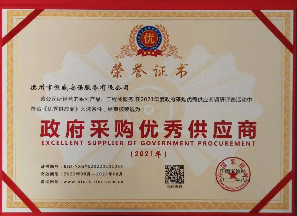 此次获奖,既是对恒威安保公司在行业内业绩的充分肯定,也是对我们今后工作的鞭策和动力。为此,在今后的工作中,我们将继续秉承“以质量求生存、以诚信求发展”的经营理念,不忘初心,砥砺前行,努力为客户提供更好、更优良的服务,打造诚信的企业品牌形象。