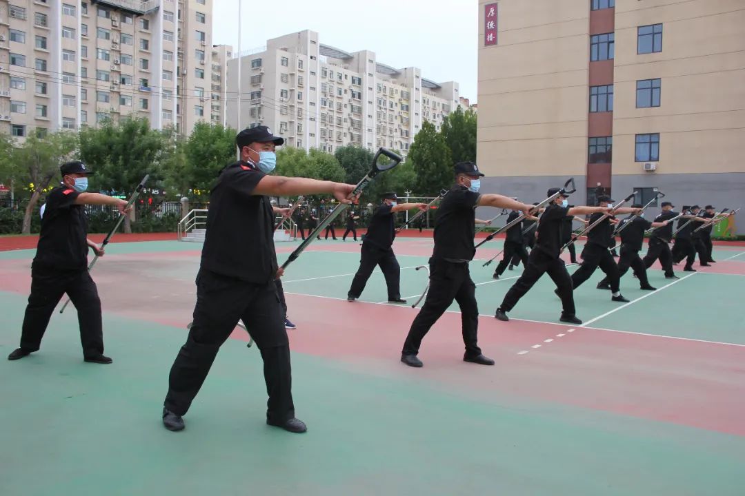 此次训练,一公司总经理王洪林精心组织,周密部署,提前制定出训练方案。分别由王新刚、戚龙全、张广东等队长现场指导训练。训练内容分为理论知识、军事训练、防暴演练、消防培训及演练、钢叉操等。理论知识,培训队长按培训方案要求如期进行讲解;军事训练,由训练队长现场指导,从较基础的队列训练,军姿、稍息、立整、跨立、敬礼等系列动作开始,一一进行。另外,消防器材(灭火器、消防水带等)的使用,灭火与疏散逃生方法进行培训及演练。同时就钢叉操、反恐防暴分别进行了现场指导与演练。培训队长及参训队员们不怕苦、不怕累,认认真真完成了各项训练。