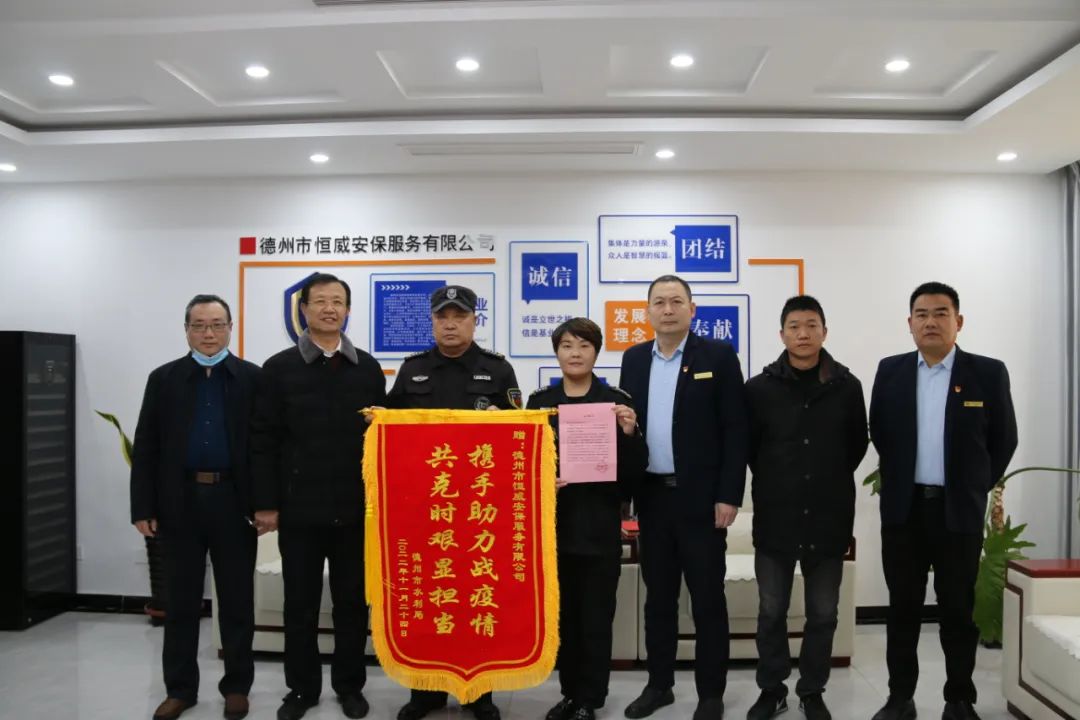 近日,德州市水利局领导、德州银行领导先后到访e77乐彩赠送锦旗,上面写有“携手助力战疫情、共克时艰显担当”、“忠诚卫士、勇于担当”“纪律严明、作风优良、防控有力、服务好的效率”,公司党支部书记、总经理王新卫,副总经理王洪林、高印东、张有利参与来访接待。
