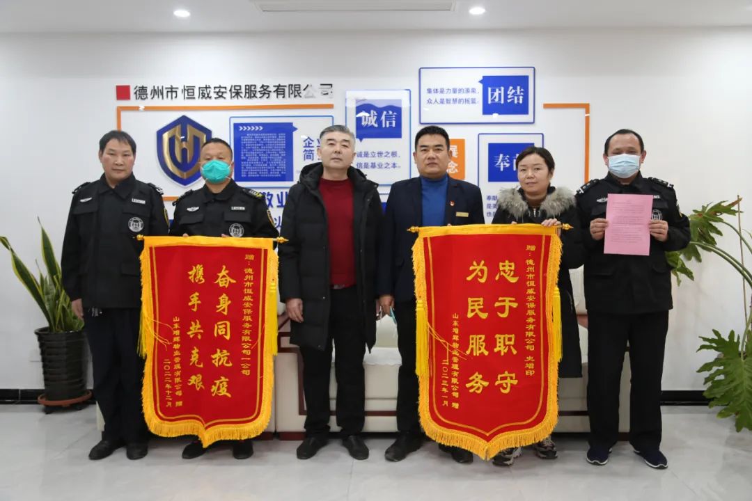 鲜红的锦旗是既是一份肯定,也是一份动力,更是一种鞭策,锦旗的背后是每一位恒威人的缩影,恒威安保将继续秉承“诚实守信、客户至上”的企业宗旨,用实际行动践行初心使命,用饱满的精气神展现新时代“恒威安保人”精神本色。