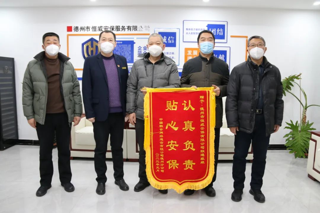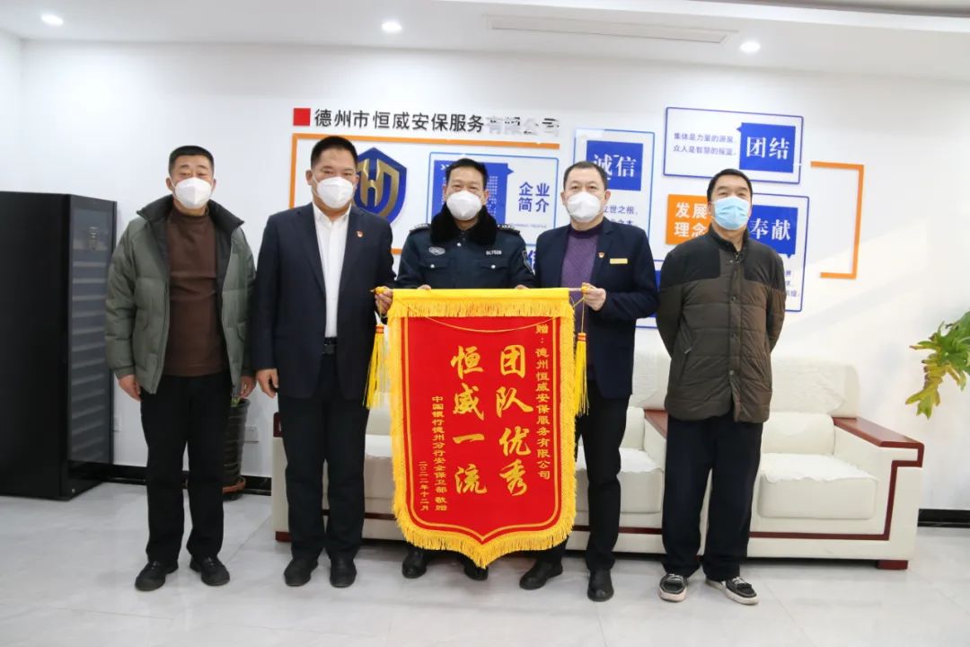 将写有“团队优良 恒威一流”“认真负责 贴心安保”的锦旗交予恒威安保手中,感谢恒威安保人在工作中履职尽责、踏实勤恳、真诚细心,特别是疫情防控期间,不畏时艰、任劳任怨坚守工作岗位,为公司有序、健康、稳定运转贡献了坚实力量。