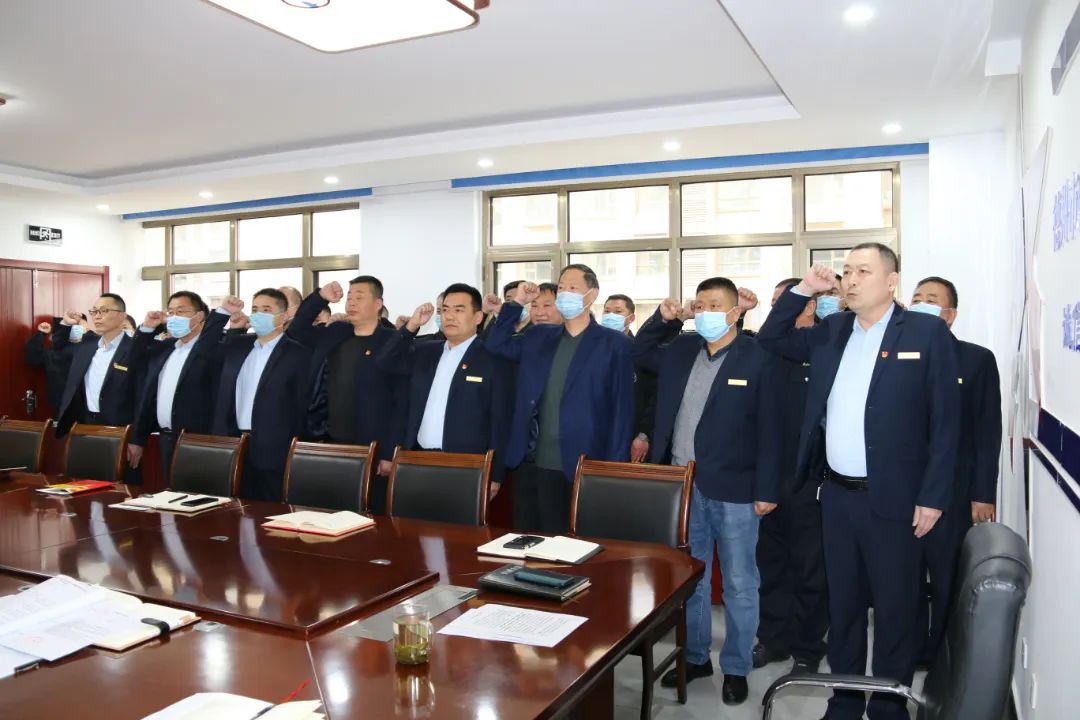 全体党员和入党积较分子现场起立共唱国歌,在王新卫同志的领誓下重温入党誓词,重忆入党初心,铿锵恢宏的誓词,强烈震撼着在场的每一位党员,体现了党员同志们对中国共产党的无限忠诚。