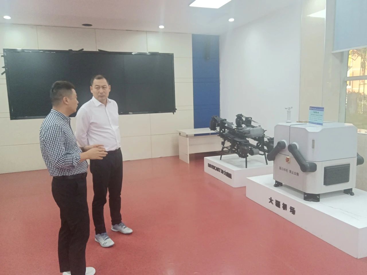 考察组第一站前往安徽省空安信息技术有限公司(以下简称“空安信息”),空安信息技术研发总监黄超和销售总监钱亮热情接待了考察组。黄总监详细介绍了公司发展及当前业务开展情况,并安排技术人员进行无人机巡检演示,双方就此进行了深入地交流,并表示将进一步加强合作,利用科技安全赋能,推动城市安防提质增效,促进构建空地立体协同巡防体系,持续提升公司安保防范能力。