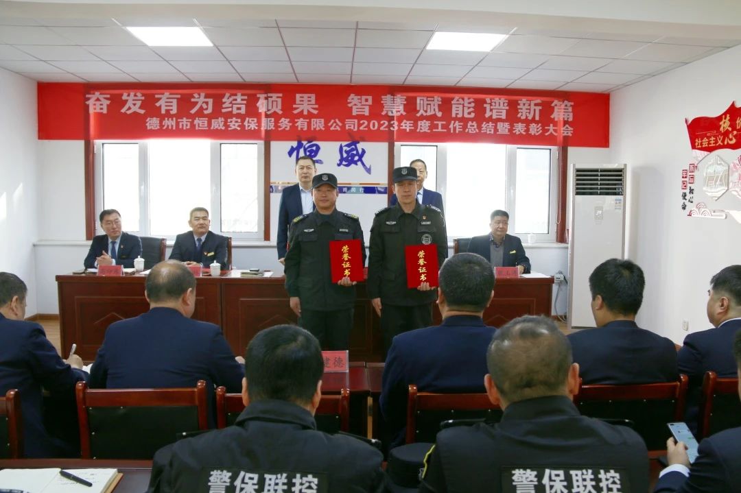 他指出,2023年,在党的二十大精神指引下,在恒威安保党支部的坚强领导下,公司全体干部职工在曲折中奋进、在挑战中坚守、在困境中突围,经过大家一年的共同努力,主要经济指标完成既定目标,获评“全省保安行业成绩突出集体”荣誉称号,员工的幸福感和获得感大幅提高。这些成绩的取得,是公司上下团结一致、正确领导的结果,更是全体同志们埋头苦干、努力拼搏的结果。