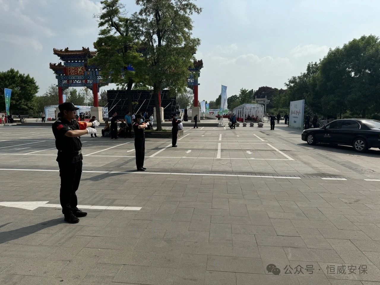 此次安保任务,我司主要负责主舞台以北区域,由于参会人员、车辆众多,需安排专人引导车辆进场有序停放,疏导人员。从早8点至晚10点,两天的勤务值守,恒威安保人一直“钉”在现场,引导车辆停放、疏散人群、摆放车辆,整齐的着装、规范的手势、忙碌的身影受到在场群众和客户单位的广泛好评,再次擦亮了恒威安保品牌底色,赢得了群众良好口碑。