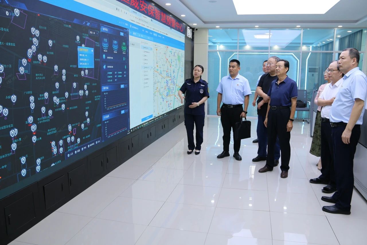 调研期间,在公司总经理王新卫的陪同下,调研组一行首先参观了恒威安保智慧预警中心,共同观看公司展示短片,深入了解了公司在智能监控、无人机巡防、应急响应及日常安全管理等方面所采用的先进技术和管理措施。