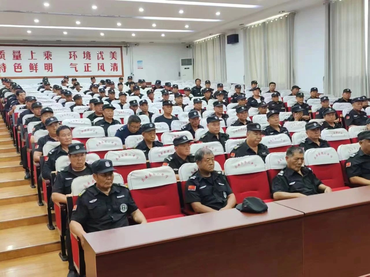 此次培训活动为期一个月,课程内容丰富、实践可操作性强,包含校园保安理论,队列训练,防暴器械及消防器材的使用,通过分批、分期、专项等全方位培训,新手段施教,使校园专职保安员系统学习保安业务知识,熟练掌握防护器械,提高责任意识与安全防范意识,强化个人本领,履职尽责,树立良好的职业道德,切实提升校园专职保安员业务技能和应对突发性事件的快速处理能力。