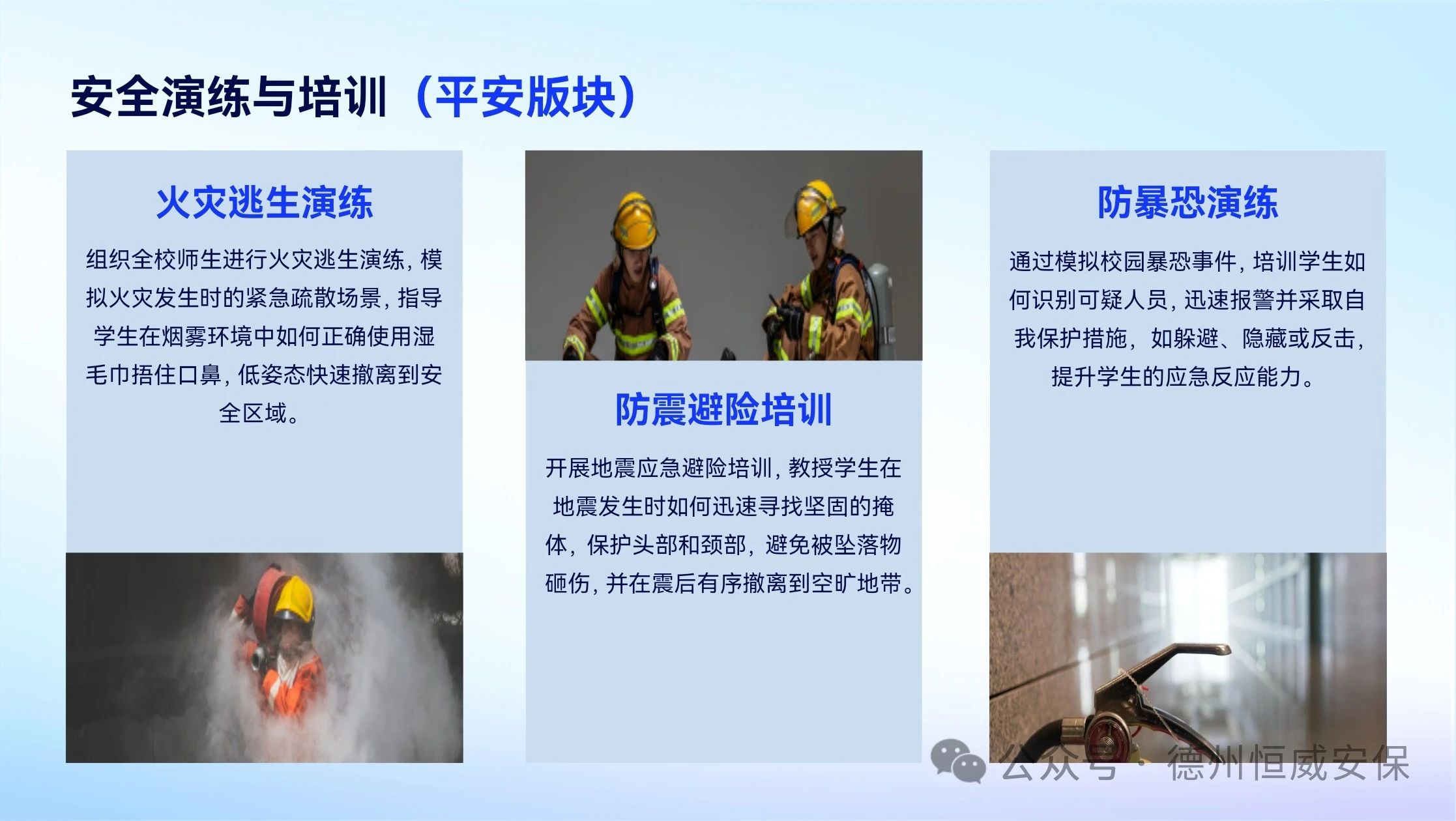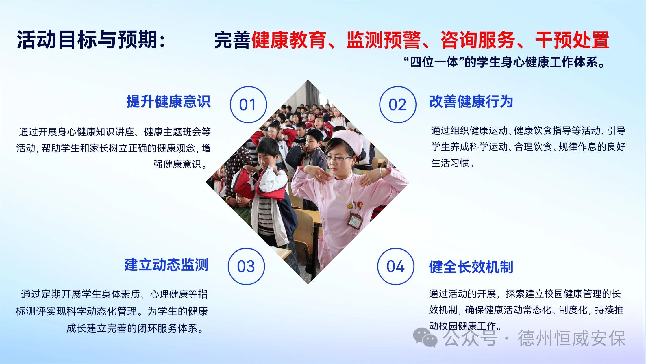 会上,公司恒心AI心理测评中心负责人赵海峰,就主题为“恒久关健·心安立德”的“平安·健康校园行”活动方案进行了详细阐述。方案明确提出,通过AI科技赋能学生身心健康测评与提升工作,助力完善“四位一体”学生身心健康工作体系。此外,活动还精心规划了校园火灾逃生演练、地震避险演练以及升级版校园防暴恐应急演练等一系列大型演练项目。