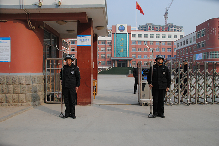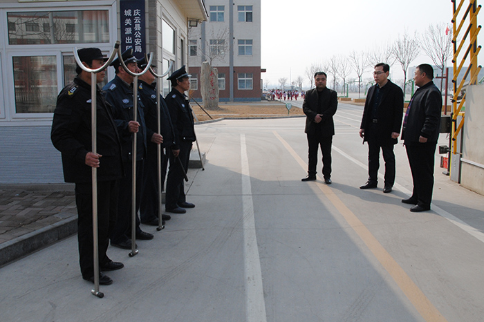 期间,共对庆云云天学院、金书教育集团、第五中学、渤海小学、实验小学、好幼儿园等13所校园安保工作进行了逐一检查。李建德总经理向教育局领导详细介绍了各校安保队员、器械装备、管理制度落实情况及应急处突预案的基本要点。教育局领导对公司高起点、高要求、高定位的校园安保工作给予高度评价,并对公司一流的管理、一流的服务、一流的装备表示非常满意。对我公司在庆云承接的校园安保工作给予厚望。